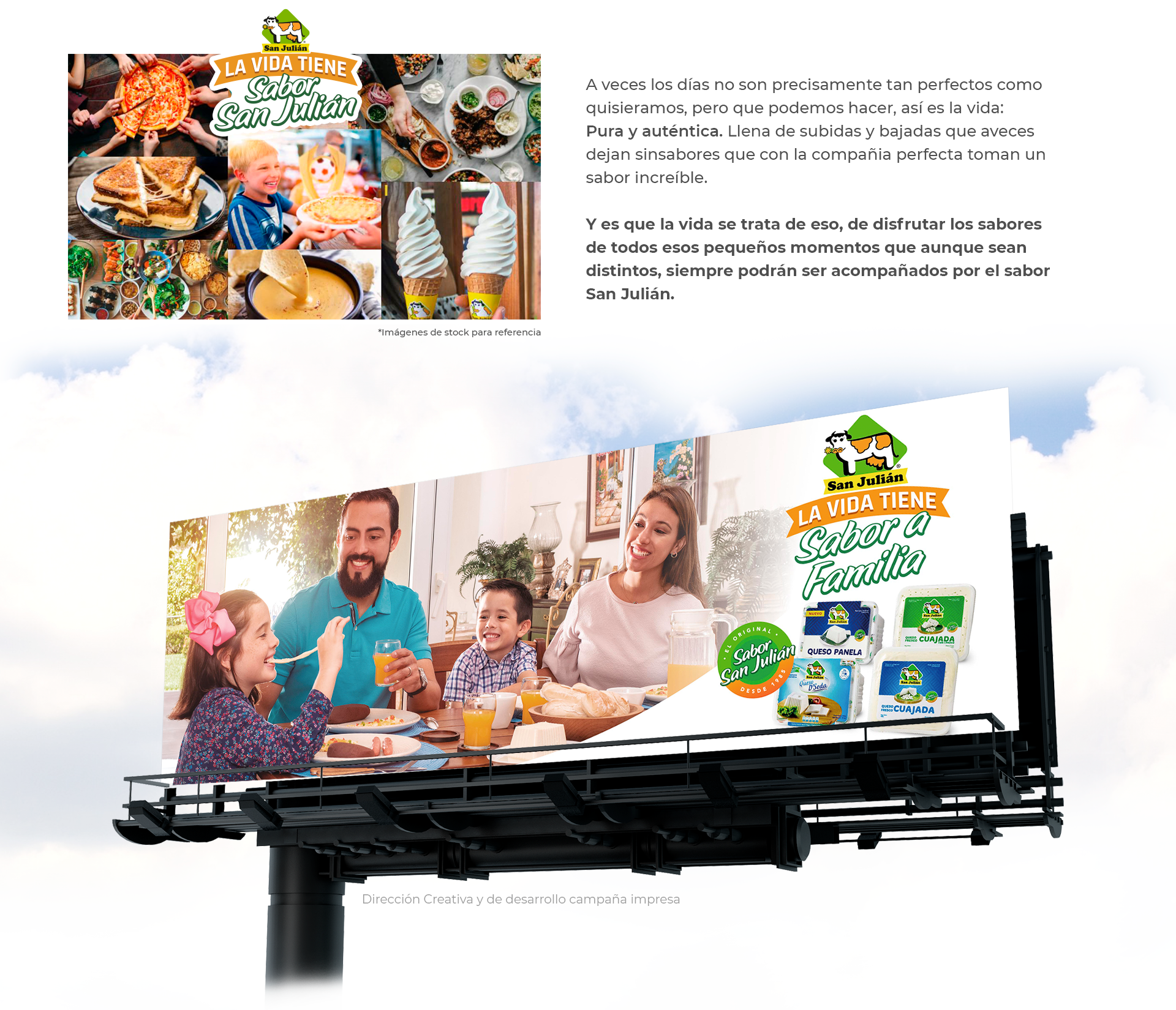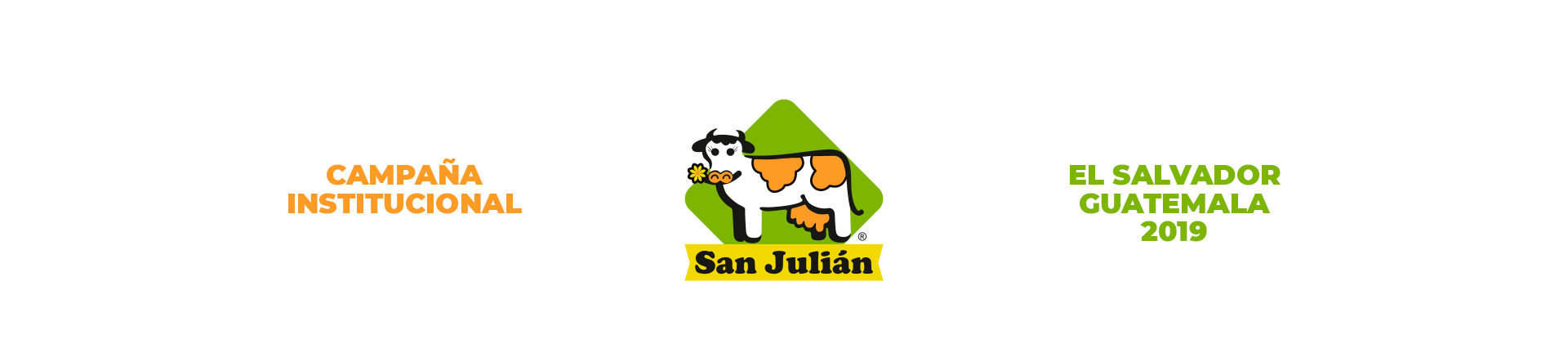 Campaña Publicitaria Institucional de medios tradicionales para la marca San Julián, que busca poder conectar con todos los momentos donde compartimos con la gran familia de productos de la marca Marca: AGROSANIA - San Julián Agencia: Above Zero - Manuel Panameño Director Creativo: Manuel Panameño Visualizadores: Michelle Tercero - Selvin Melgar Foto Quesos Frescos: Arteria Estudio Productora: ELF - Estos Locos Films