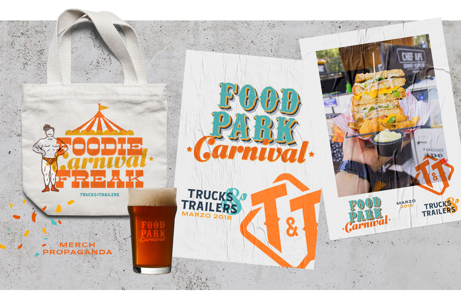 Visual identity for an event organized for Trucks & Trailers - Food Park in El Salvador, Central America. Development of concept, graphic design, food stylist and photography for the campaign. The goal was to attract people to attend a food diversity festival.