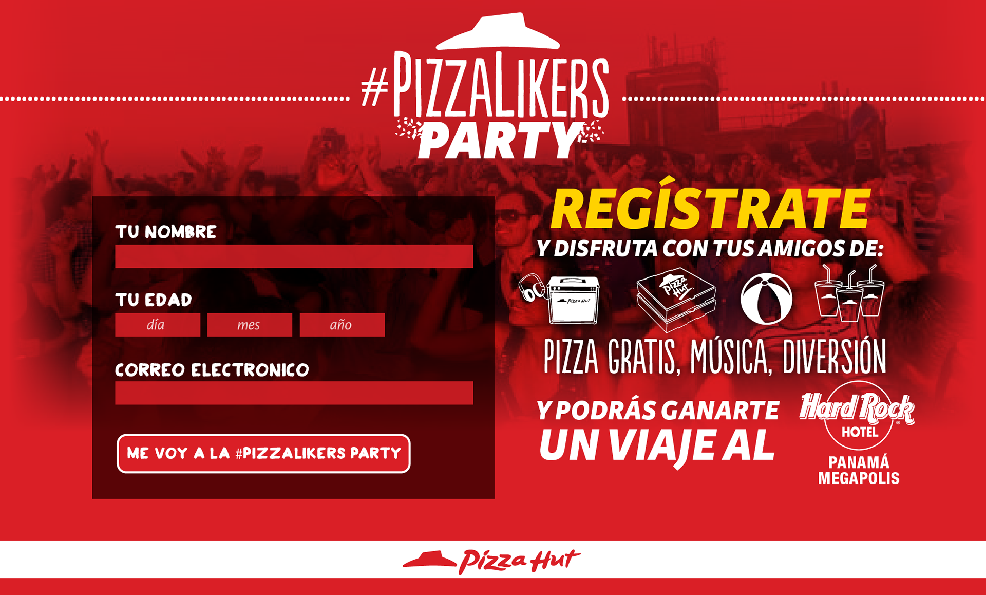 Por todo lo anterior los #PizzaLikers se merecian un agradecimiento al estilo Pizza Hut, por lo que un solo post no bastaba y se extendio a una campaña completa, con una fiesta para todos los #PizzaLikers con pizza gratis, música, diversión y premios.